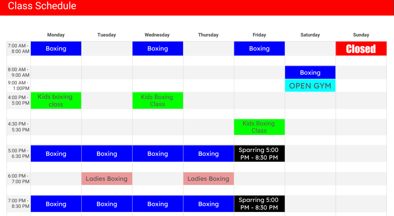 Access to our full facility including heavy bags, speed bags, Olympic boxing ring, and strength equipment anytime during business hours to train at your own pace.